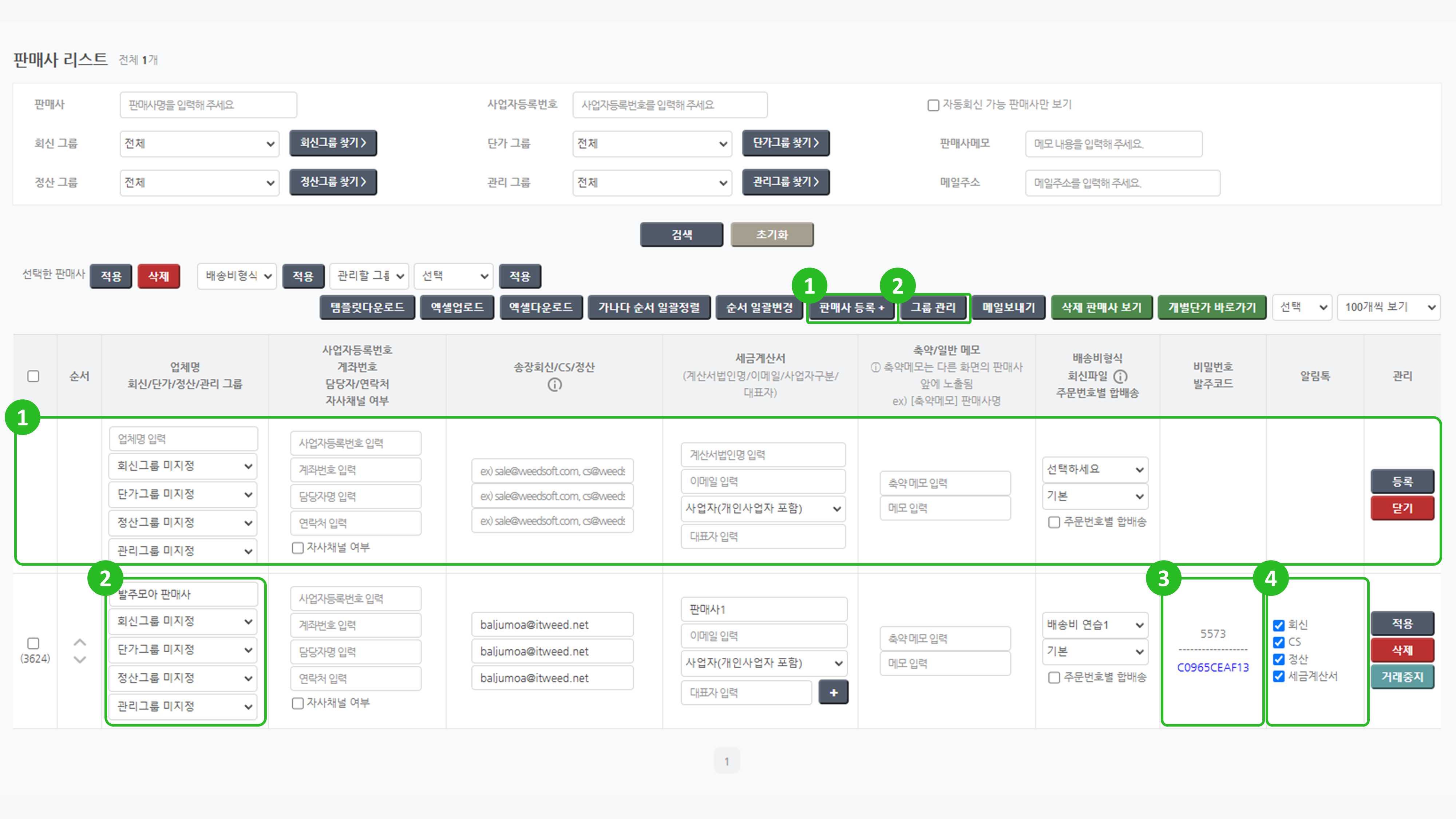 그룹 관리 버튼을 통해 판매사를 그룹으로 관리할 수 있습니다.