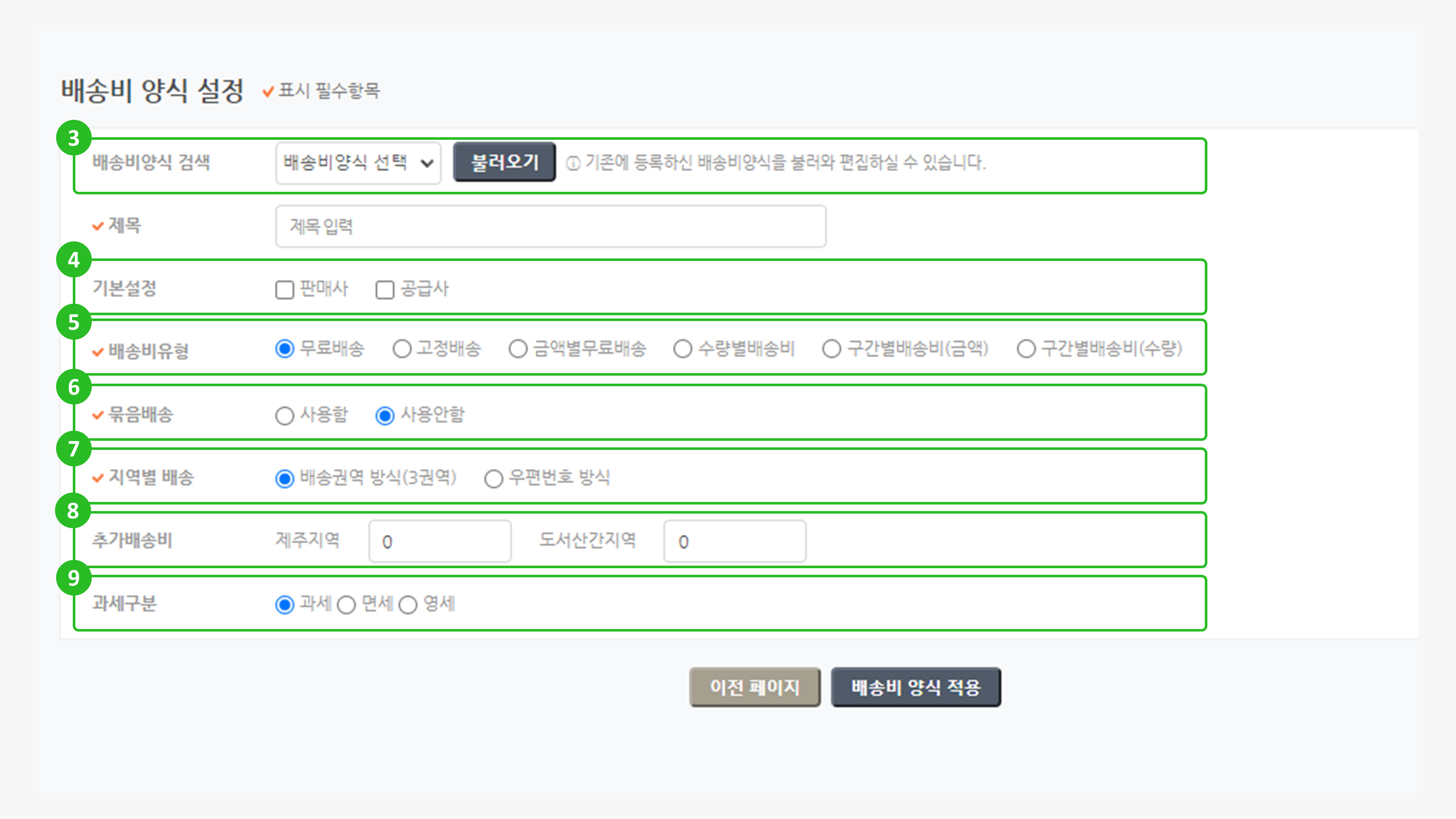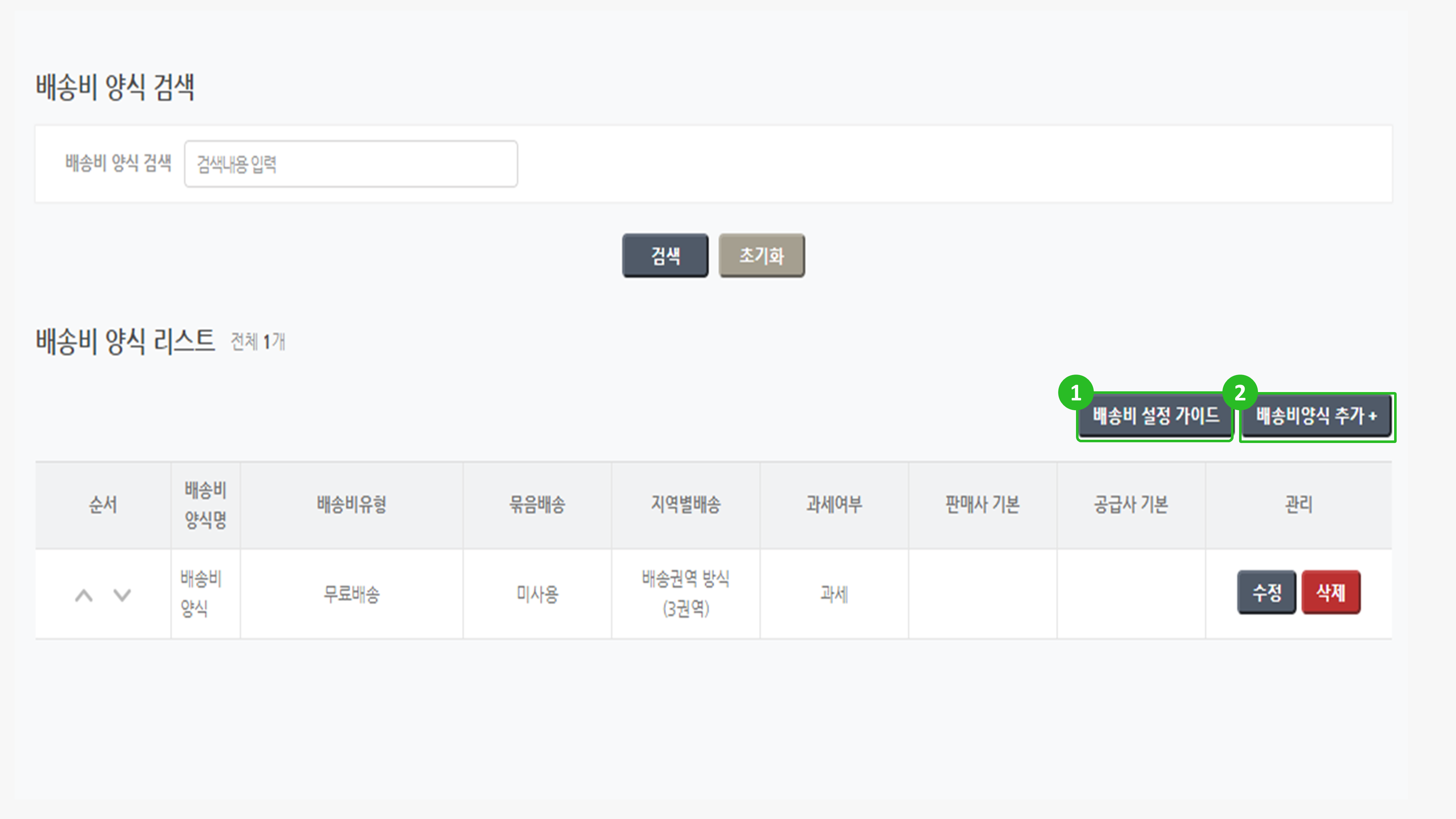 새로운 배송비 양식을 추가할 수 있는 기능입니다.